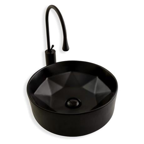 *Yuvarlak ve sade tasarımlı iç yüzeyi köşeli çizgili siyah tezgah üstü lavabo
