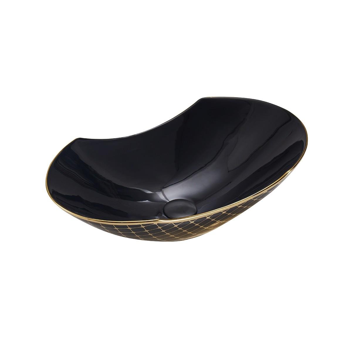*Siyah & altın renk desenli dikdörtgen tezgah üstü çanak lavabo