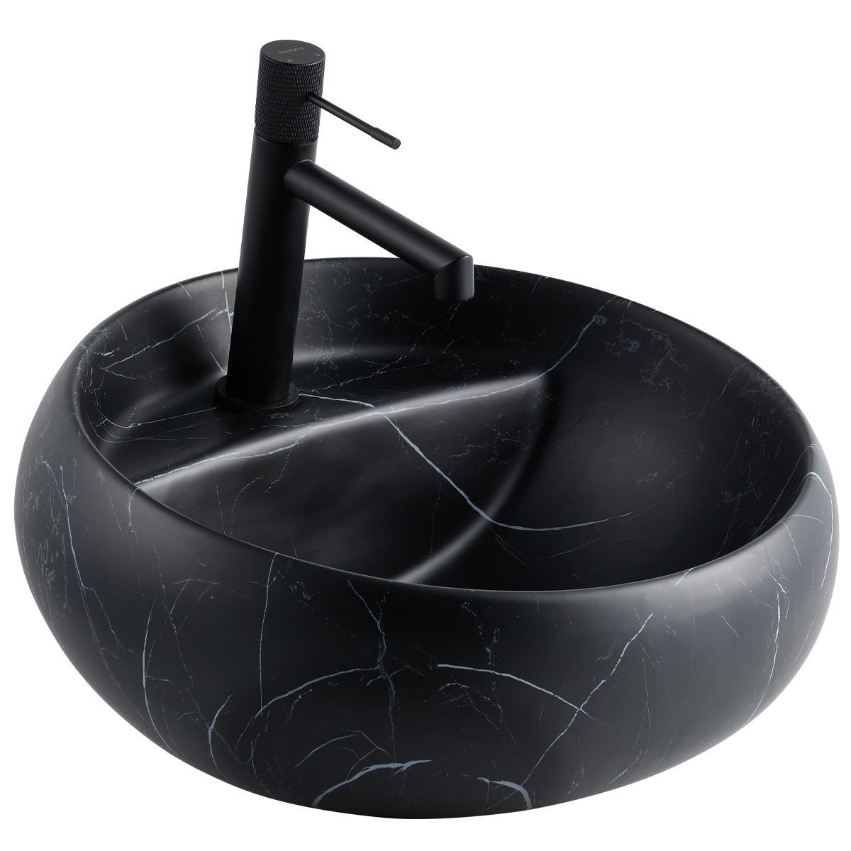*Siyah mermer görünümlü yuvarlak tezgah üstü lavabo