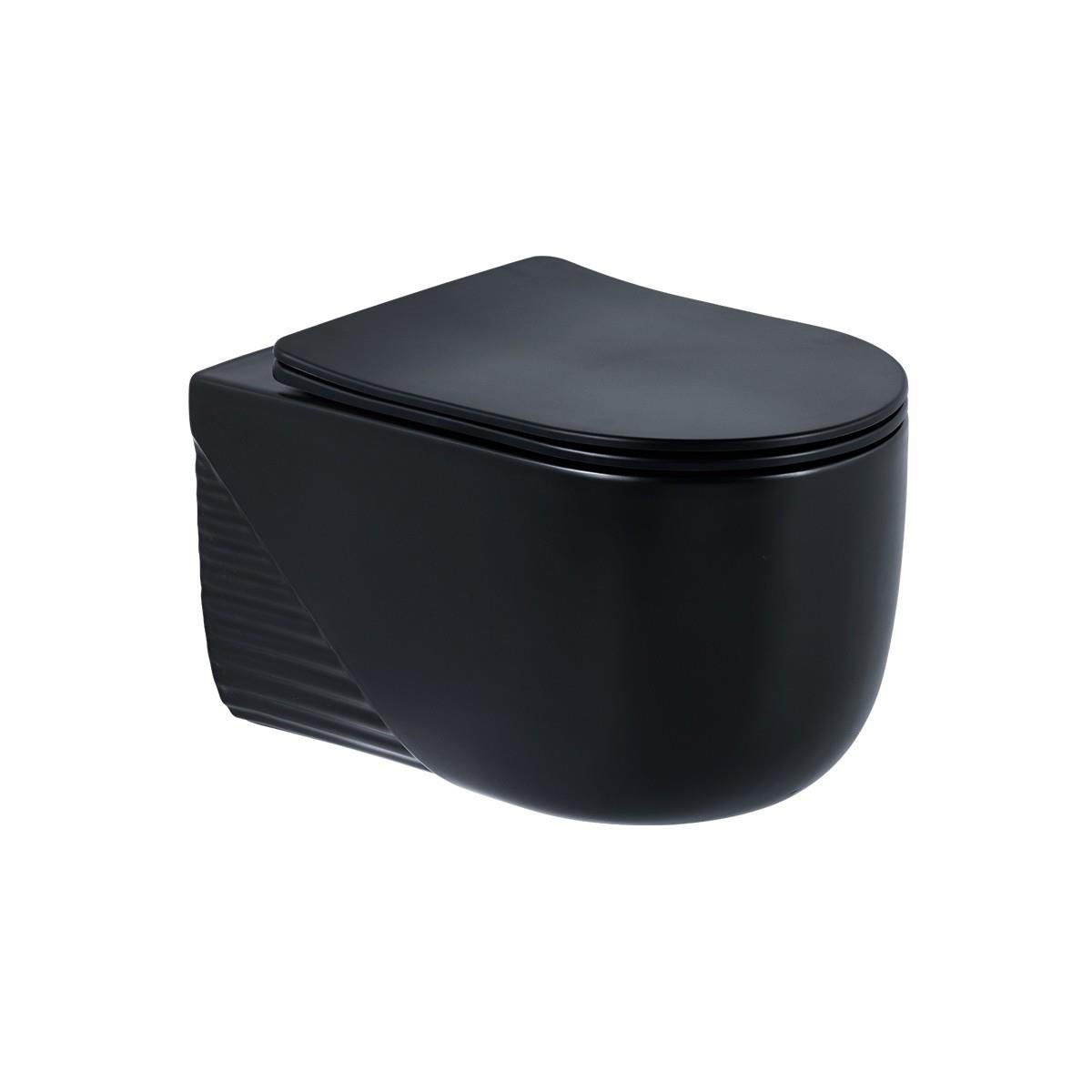 *Mat siyah renk yavaş kapanır kapak ve kanalsız asma klozet
